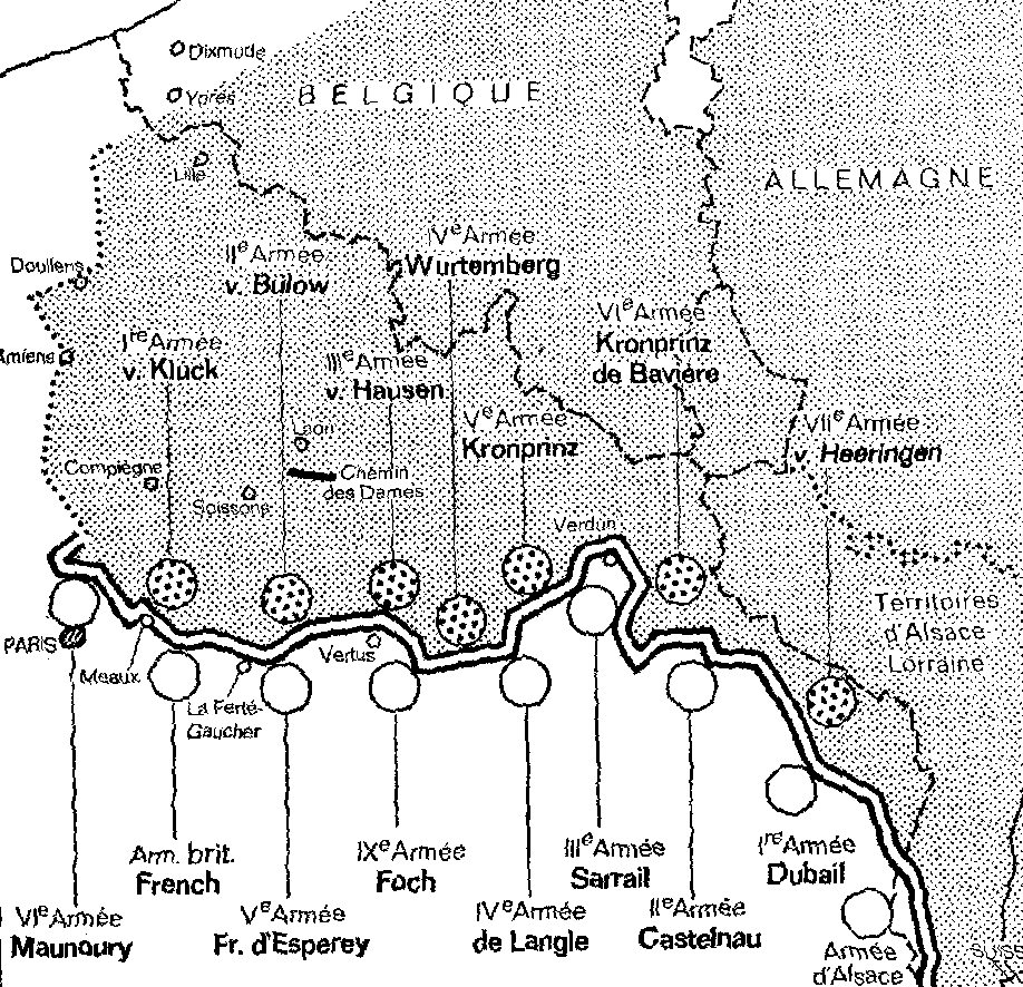 Von Kluck a le tempérament d'un joueur. Le jeu, il aime ça ! Il manie admirablement ses cartes, mais Joffre, à Bar-sur-Aube, y voit clair dans son jeu. Von Kluck devrait payer cher l'imprudence qu'il a commise de dégarnir sa gauche au profit de sa droite, d'ouvrir ce hiatus de quarante kilomètres entre son armée et celle de Bülow.