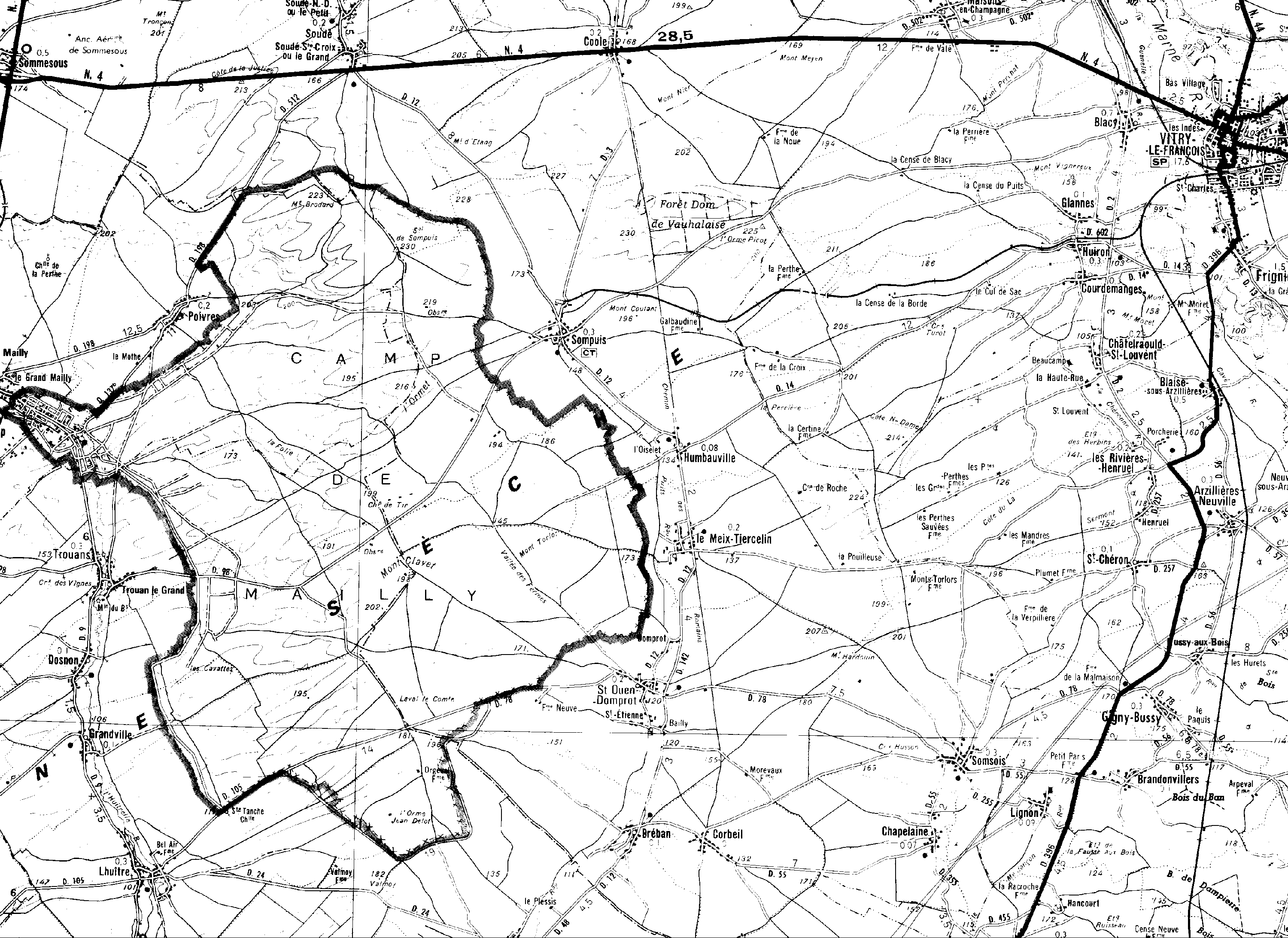 C'est donc la 43e division (du 21e corps) et la 23e division (du 12e corps) qui attaquent sur Sompuis. La 43e division, faisant aile tournante, de façon à déborder la droite ennemie, se porte par le signal de Sompuis, à travers les bois, sur la voie ferrée, de façon à couper la 23e division allemande du groupement Kirchbach : c'est ce qui explique la situation extrêmement critique de cette division. Cependant, elle fait ferme, car sa voisine de l'ouest, la 23e de réserve, s'est emparée de Mailly. " La 43e division, écrit le général Legrand, apercevait au loin sur sa gauche la poussière des colonnes de la 9e division de cavalerie se dirigeant vers le sud de Mailly." La chaleur et la fatigue retardent d'ailleurs la marche de la 43e division qui, à la nuit, campe à la Folie et surtout aux Fénus, " seul point d'eau de la région n. A droite, la 13e division qui échoue à Pimbraux et Nivelet, parvient aux abords du signal de l'Ormet. Cependant la voie ferrée n'est pas encore atteinte autour de Sompuis.