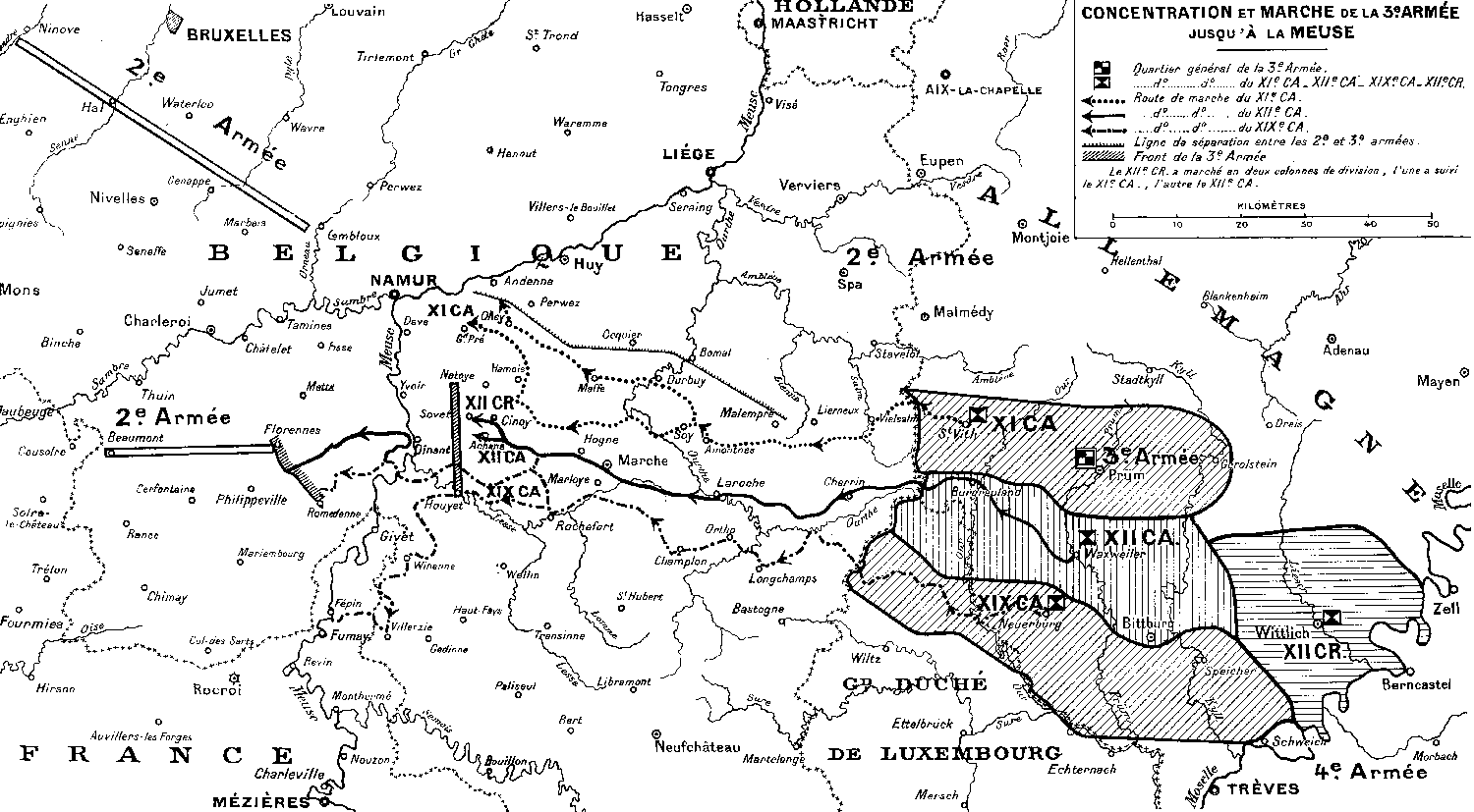 CONCENTRATION ET MARCHE DE LA 3E ARMEE ALLEMANDE JUSQU'A LA MEUSE