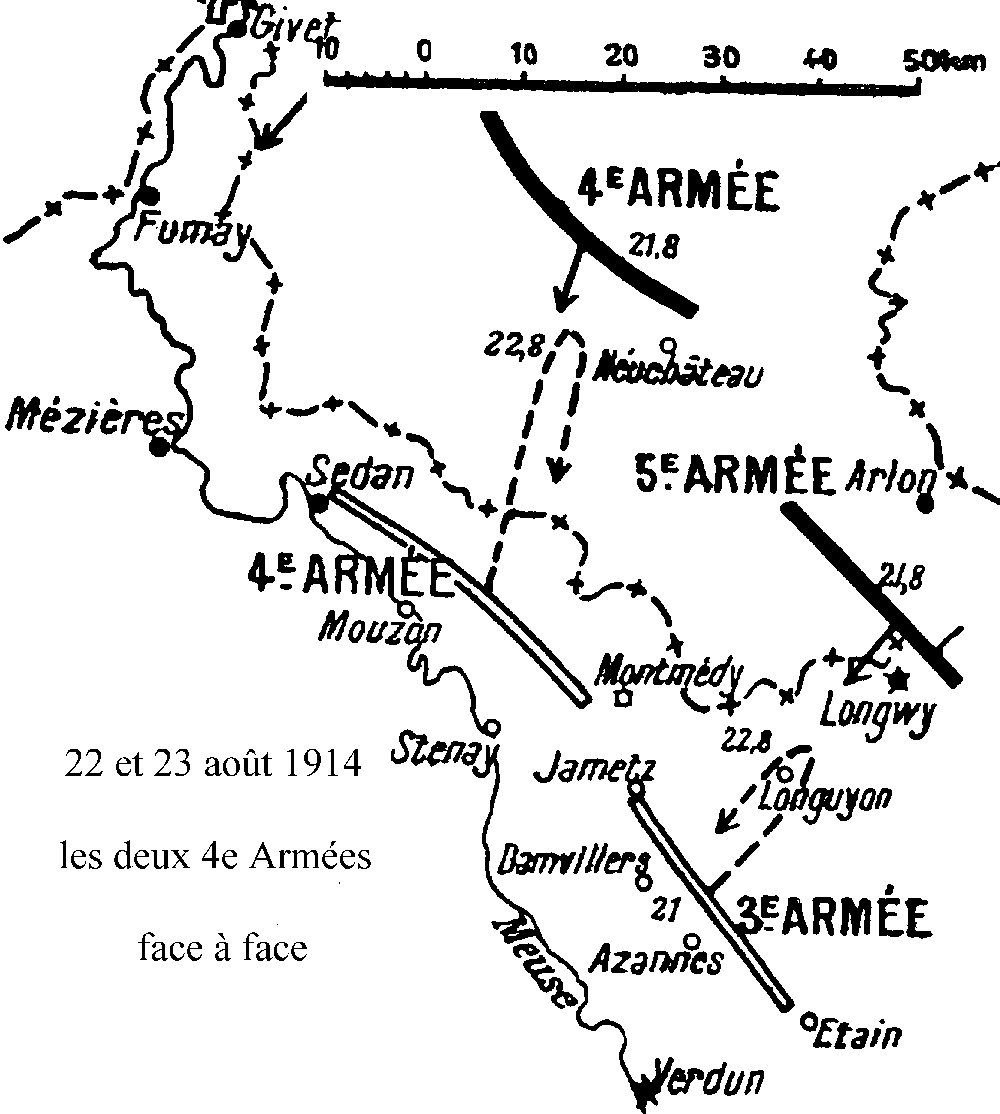5 - Les conséquences pour la 4ème Armée des échecs du 22 août, la retraite du 23. Rappel sur les batailles de la Frontière.