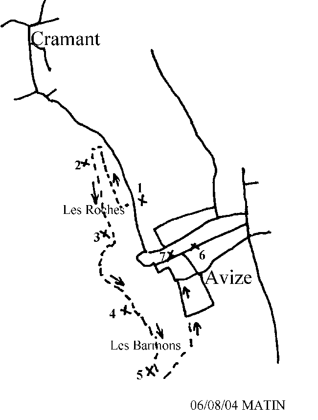 Rendez-vous devant l'église Saint Pierre, à Epernay, à 8 heures 30, parking des voitures autour de l'église. Dernier départ du car à 9 heures vers le point de démarrage de la marche, Les Roches, au nord d'Avize, étape du midi Avize.