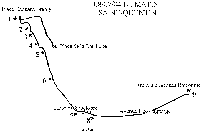 Les participants garent leur voiture, au sud de la Somme, autour de la Gare ou Avenue Léo Lagrange. Ils se rendent à pied à la Basilique. Rendez-vous devant la Basilique de Saint Quentin, à 8 heures 45. 9 heures, départ de la marche avec exposés, vers la Place Edouard Branly. Pique-nique du midi au Parc d'Isle Jacques Braconnier à Saint-Quentin (au bout de l'Avenue Léo Lagrange.)