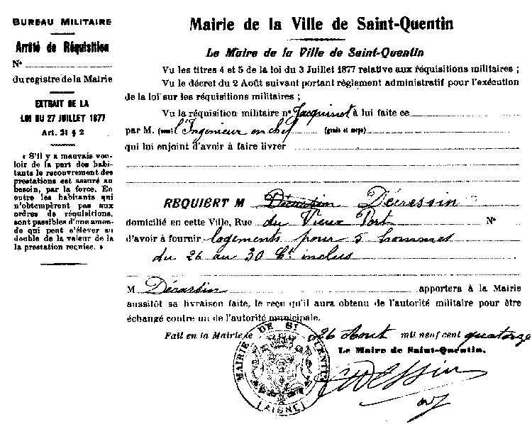 Saint-Quentin menacé, le 27 août 1914, par la 1ère Armée Allemande.
