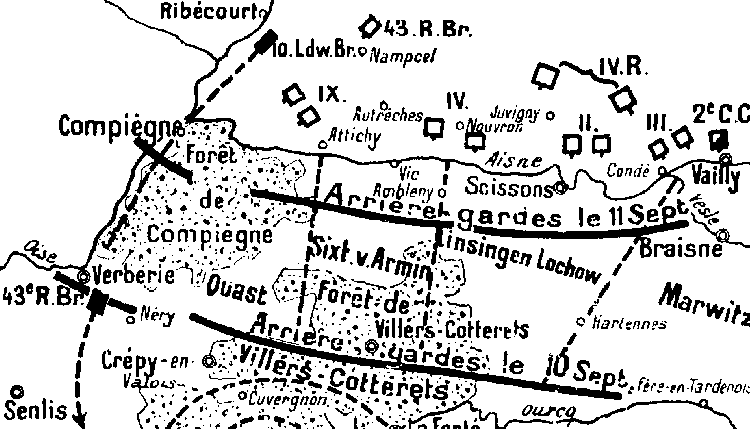 La retraite de la 1ère Armée Allemande, à partir du 11 septembre elle s'oriente au nord-est conformément aux ordres de von Bülow