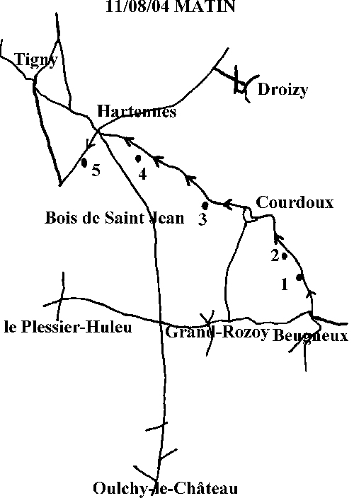 2 - L'après-midi du 10 septembre 14, pourquoi la lenteur du Général Conneau (PC le 10 au soir à Oulchy-le-Château). L'occasion perdue d'accrocher la 1ère Armée Allemande qui ne retraite pas assez vers l'est ! Pourquoi ? Montrer le Bois Saint-Jean et l'embuscade du 9 septembre après-midi |