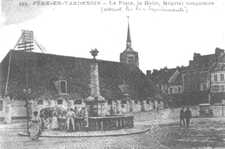 4 - Pendant un mois, Fère-en-Tardenois va devenir le poste de commandement, à l'arrière du front de l'Armée Britannique. 5 - L'état-major s'installe à Fère-en-Tardenois, le G.Q.G.W. du Maréchal French, le 12 septembre, (maison du Docteur Brodin), transféré de Coulommiers. 8 octobre départ vers Abbeville puis Saint-Omer. 6 - L'Armée Britannique installe son hôpital sous la Halle 7 - Les tombes britanniques du cimetière de Fère, où sont tombés ces soldats ? 8 - Monument aux Morts de Fère-en-Tardenois. |