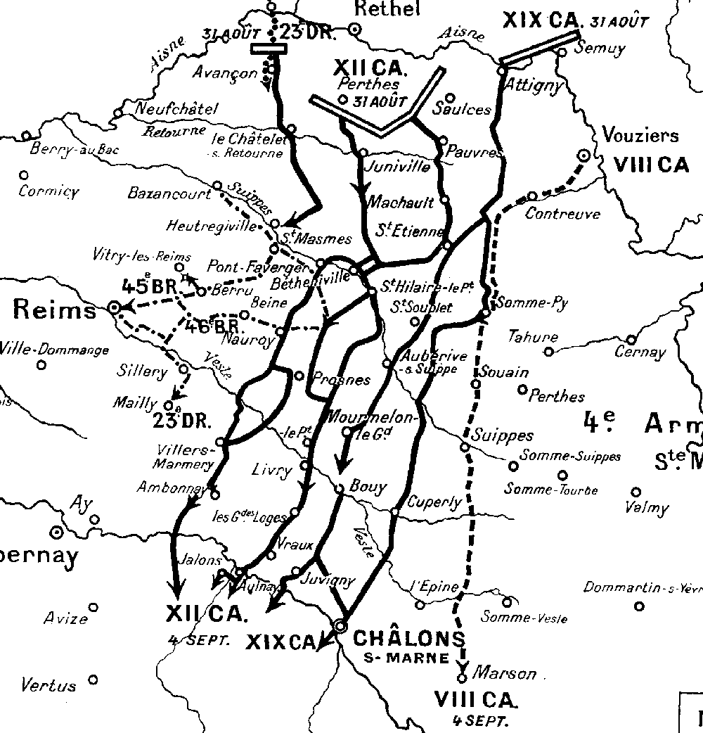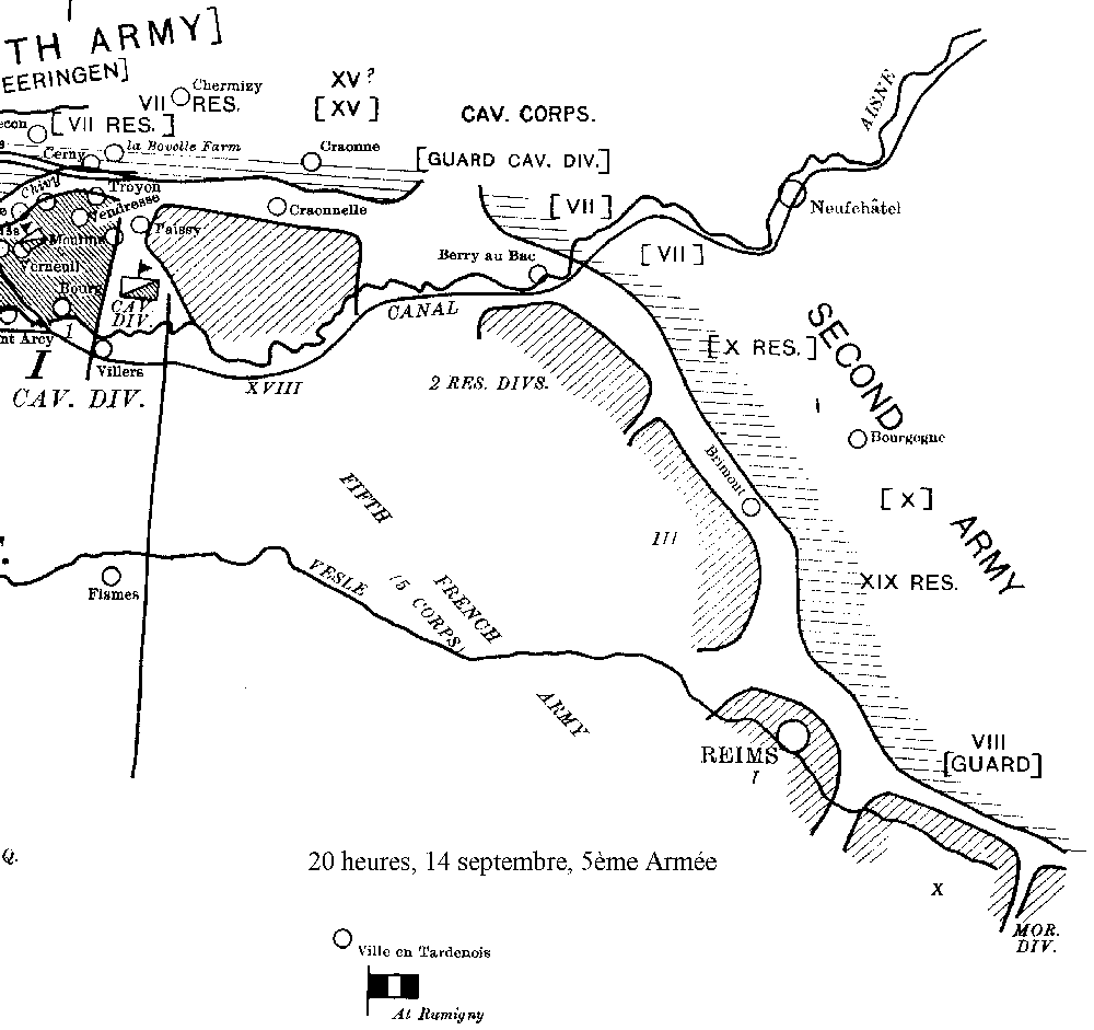 2 - Pourquoi, début septembre 1914, la 3ème Armée Allemande envoie une brigade pour se couvrir vers Reims, la surprise des reconnaissances. |