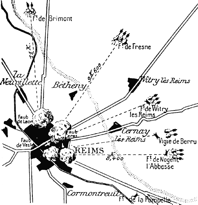 1 - La Vigie de Berru, L'artillerie Allemande peut écraser Reims depuis les forts. En face des lignes allemandes les 5ème et 9ème Armées Françaises |