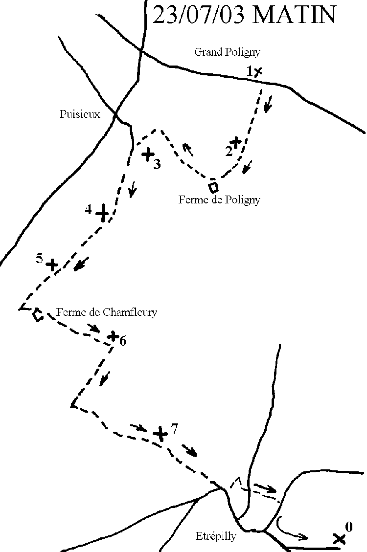 7 - Après la nuit assez calme du 8 au 9, une forte patrouille découvre le 9 septembre, Etrépilly abandonné par les Allemands, début de la "poursuite"