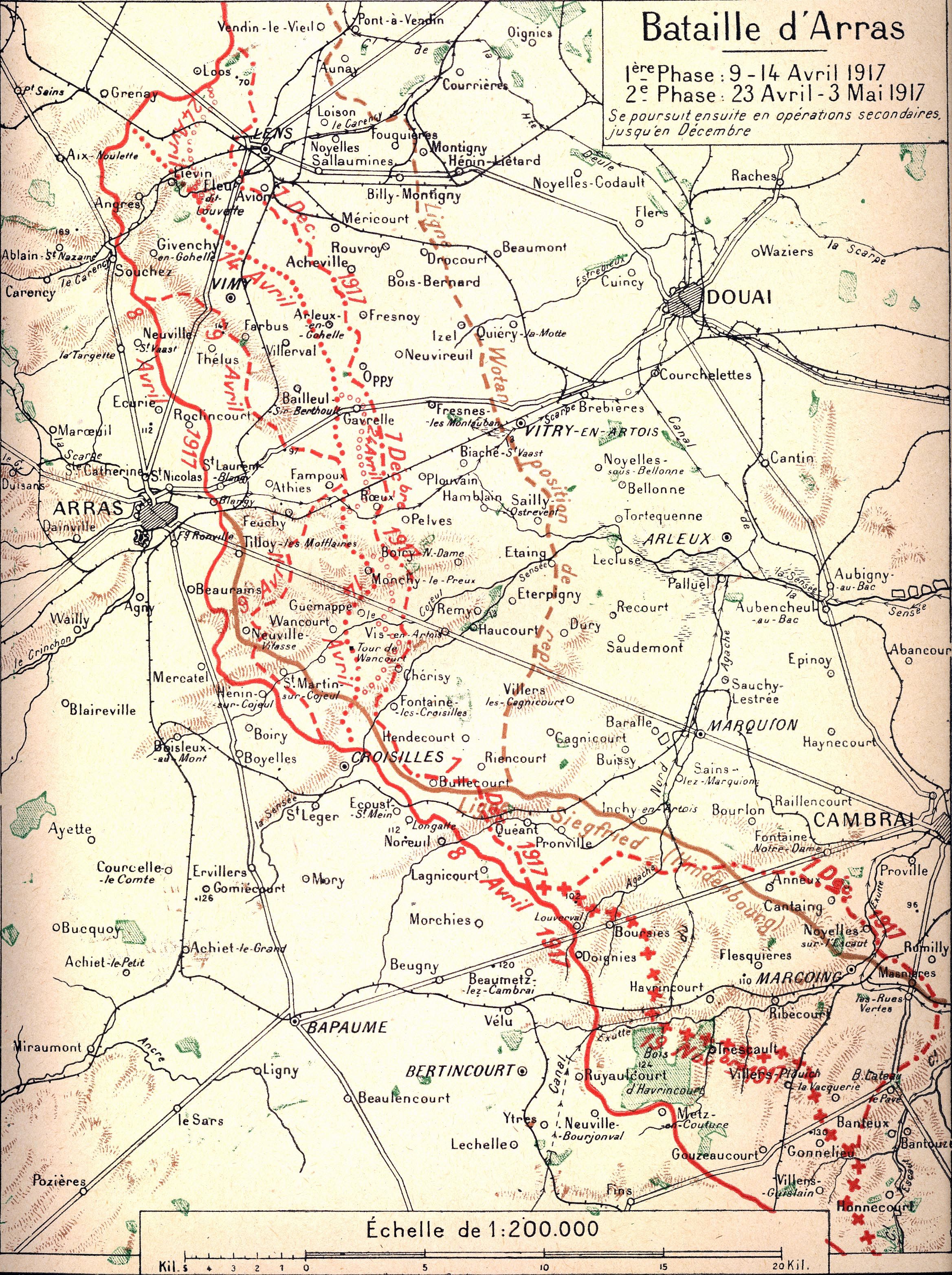 CARTE DES LIGNES DE FRONT SECTEUR ARRAS ET CAMBRAI EN 1917