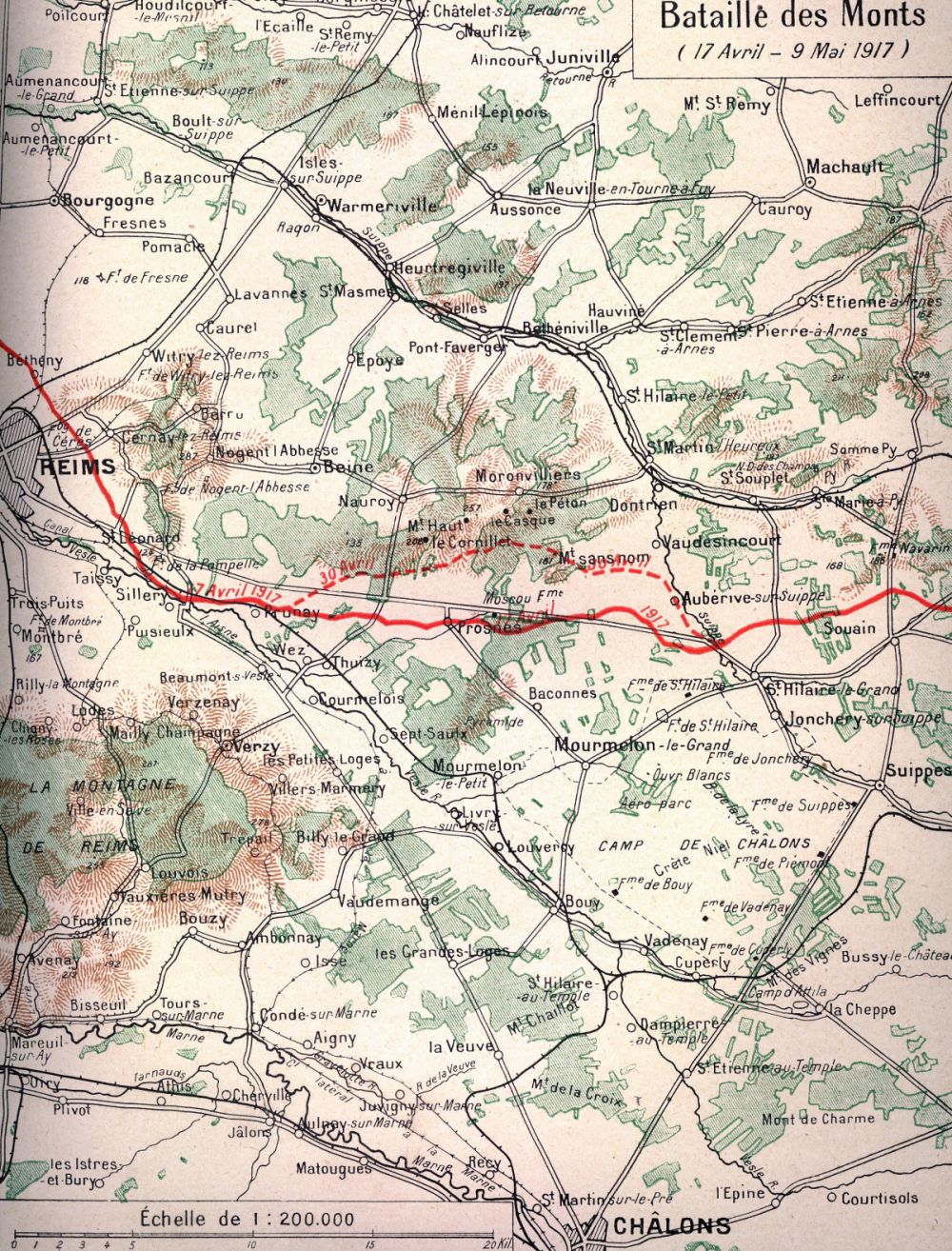 1 ° Le recul des Allemands sur la ligne Hindenburg obligeait à s'attaquer au front de l'Aisne, qui était peut-être le secteur le plus formidablement organisé de tout l'ensemble, et l'extension de l'action vers la droite jusqu'au massif de Moronvilliers ne pouvait améliorer sensiblement la situation.