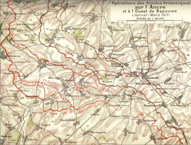 CARTE DES LIGNES DE FRONT AU SUD D'ARRAS EN 1917