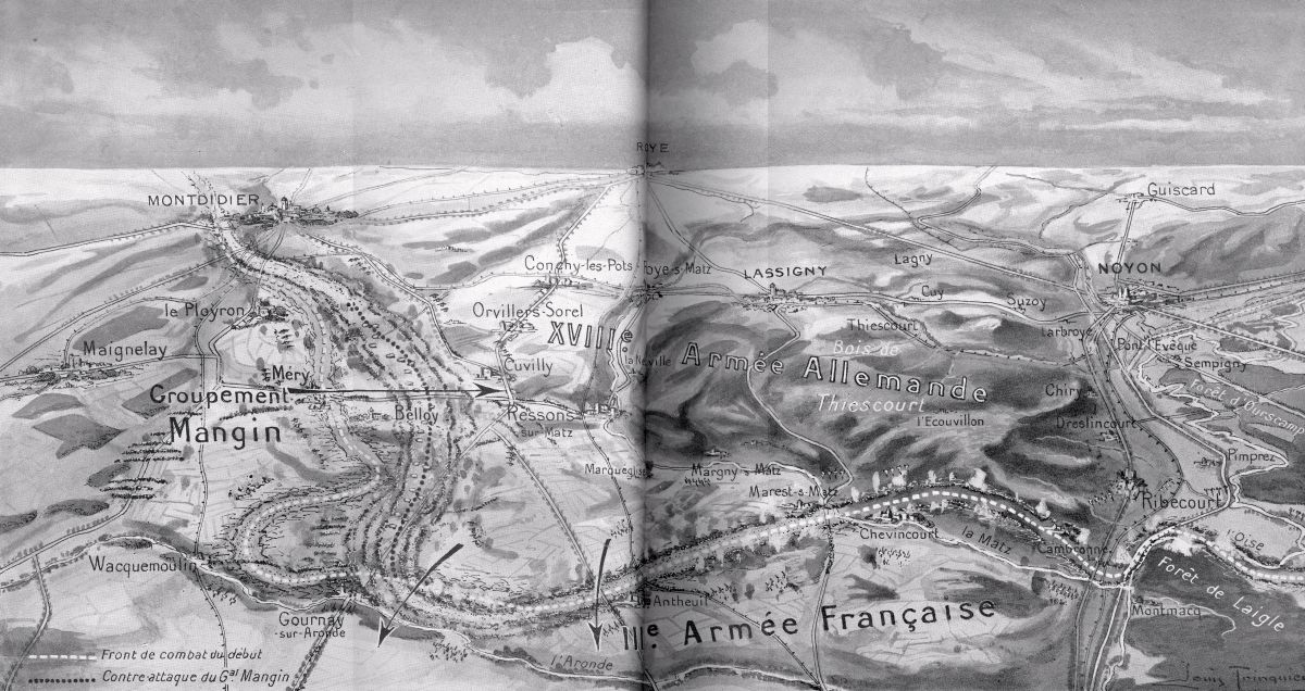 Cependant le général Fayolle, commandant le groupe d'armées, a déjà pris ses dispositions pour arrêter l'ennemi par une audacieuse contre-attaque dans le flanc droit de ce dernier.
