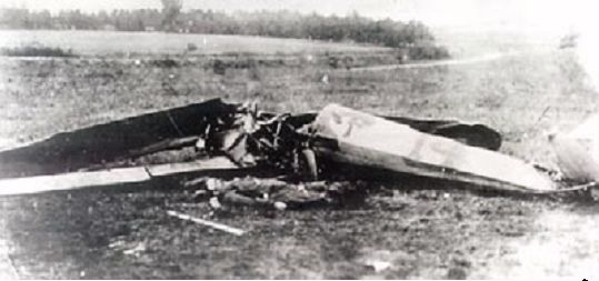 Quentin Roosevelt gisant près de son avion Nieuport, le 14 juillet 1918. |