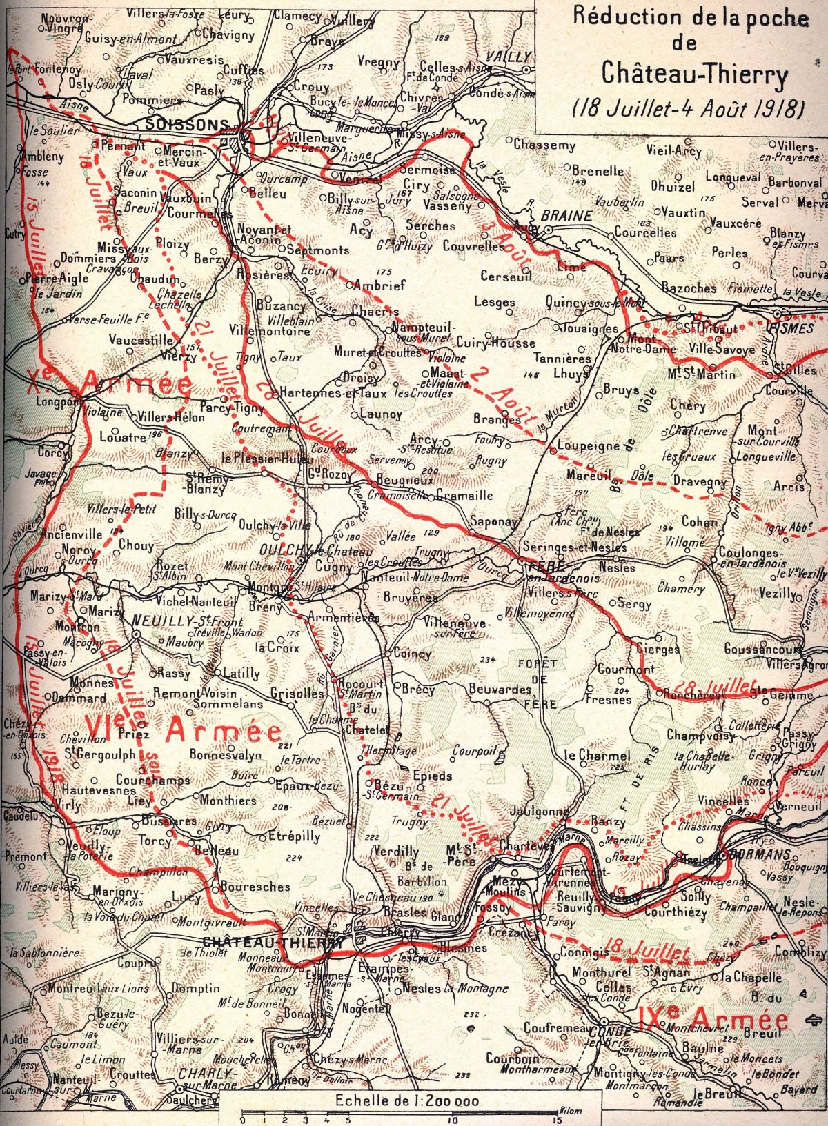 CARTE DE LA RÉDUCTION DE LA POCHE DE CHÂTEAU-THIERRY, JUILLET 1918