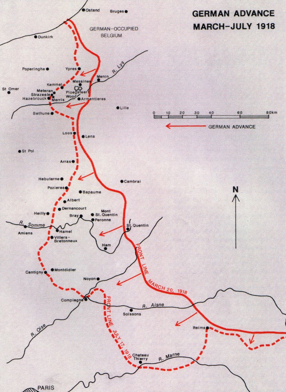 DU 20 MARS AU 17 JUILLET 1918, LES LIMITES MAXIMALES DU FRONT ALLEMAND