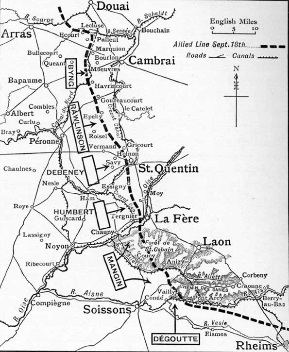 LE FRONT EN PICARDIE ET SUR L'AISNE, LE 18 SEPTEMBRE 1918