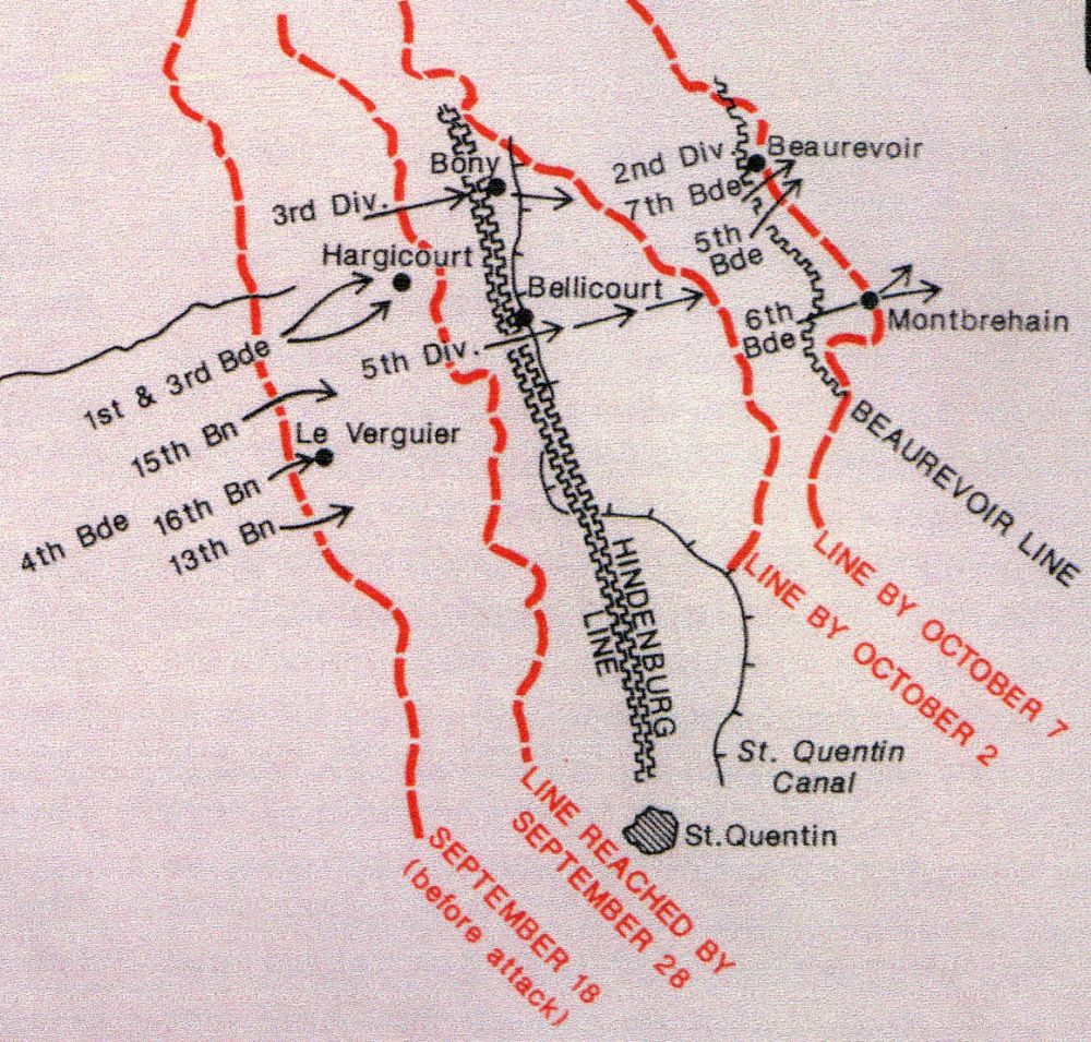 Lignes successives tenues par les Australiens du 18 septembre au 7 octobre 1918 |