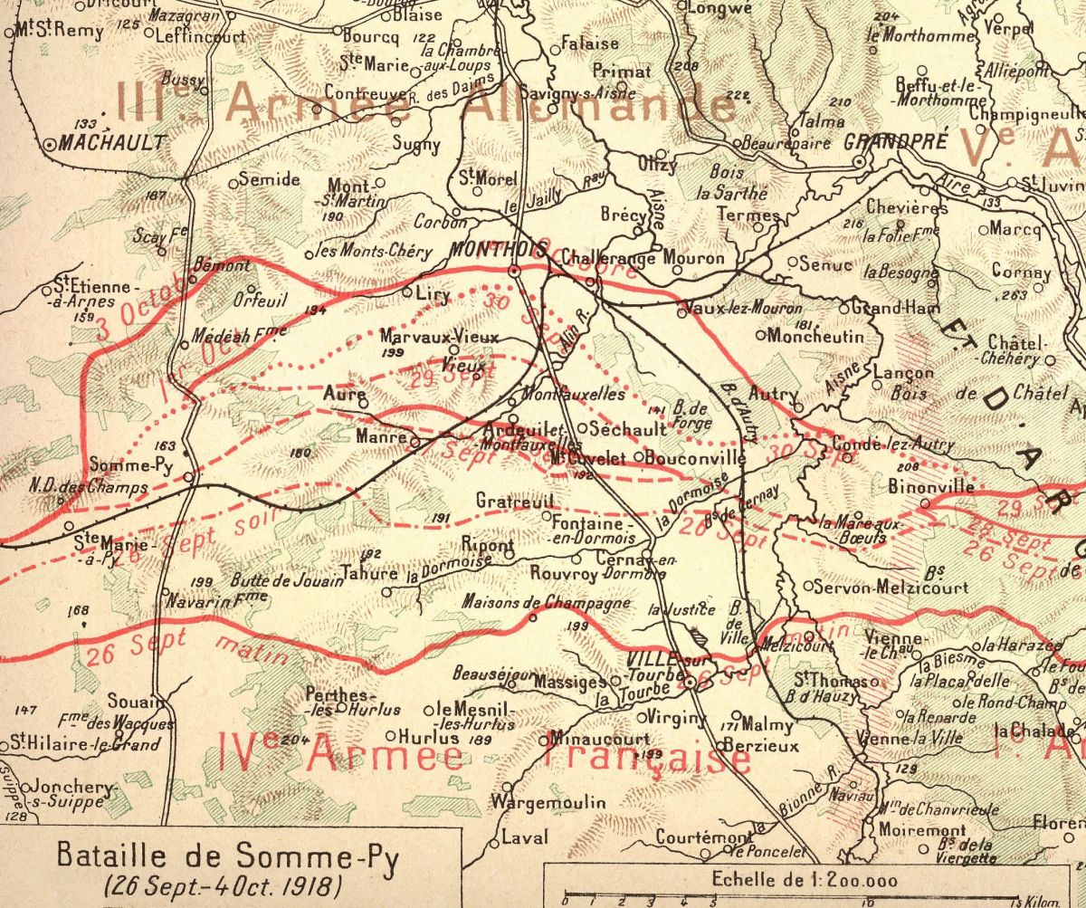 Ce jour-là son front passait par Sainte-Marie-à-Py, Orfeuil, les abords de Monthois et Vaux-les-Mouron.
