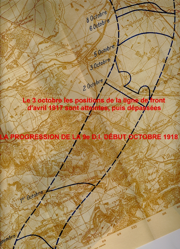 CARTE DE L'ATTAQUE DE LA 9e D.I. DÉBUT OCTOBRE 1918