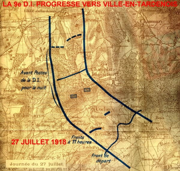 CARTE DE LA PROGRESSION DE LA 9e D.I. LE 27 JUILLET 1918