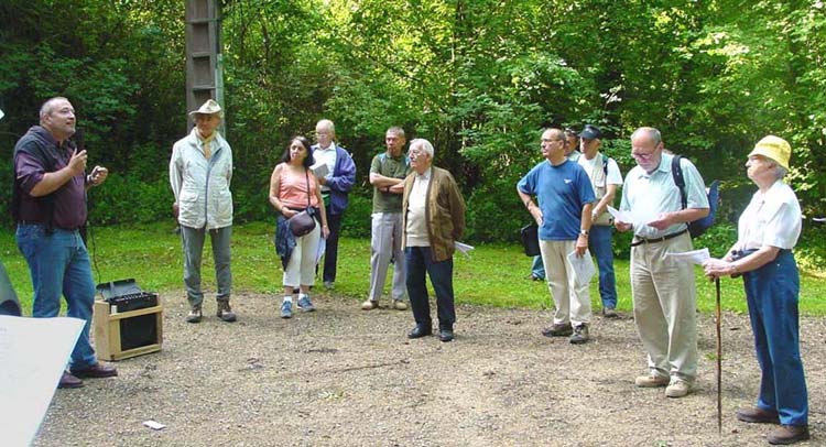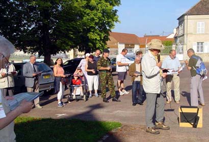 Présentation du programme de la journée, à côté de l'église de Néry