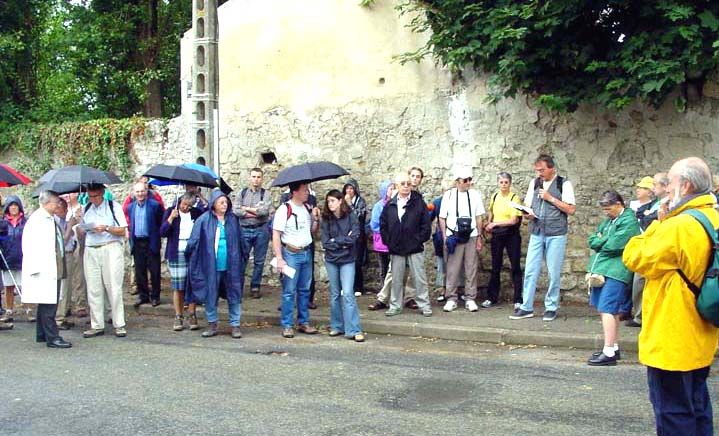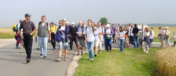 Arrivée à la Grande Tombe, les marcheurs se positionnent de l'autre côté de la route