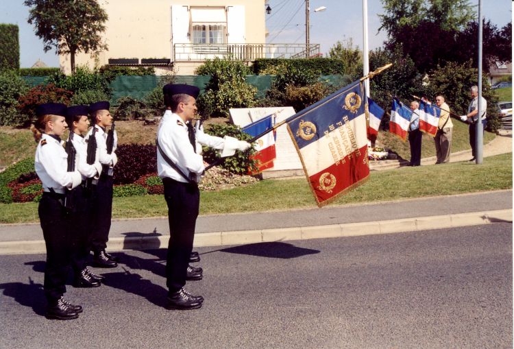 Les drapeaux se mettent en place pour la cérémonie au monument des Taxis de la Marne de Nanteuil
