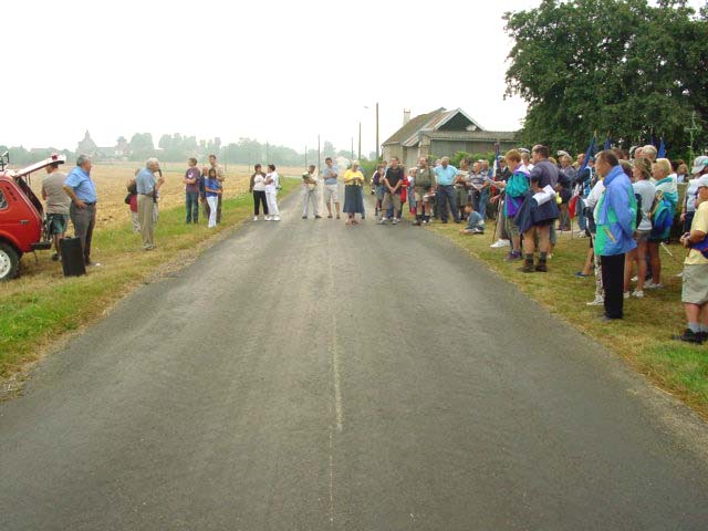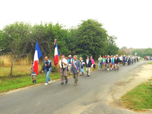 Les marcheurs se dirigent, derrière Monsieur le Maire, vers le monument du 2ème R.I.