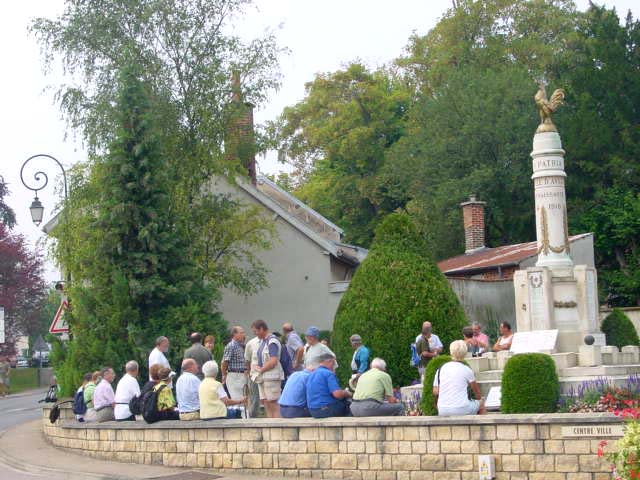 Après la descente vers la ville, les marcheurs se regroupent au Monument Aux Morts