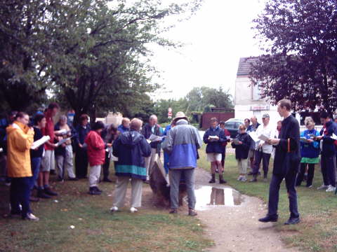 Afin de remercier Monsieur Pinon, Maire de Fismes, et toute son équipe d'historiens, les marcheurs leur chantent leur chanson fétiche