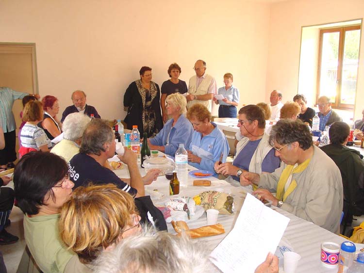 Pour remercier la municipalité les marcheurs chantent à Madame le Maire leur chanson fétiche