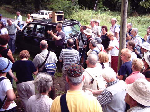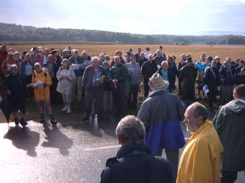 La marche s'arrête pour écouter un exposé de quelques minutes