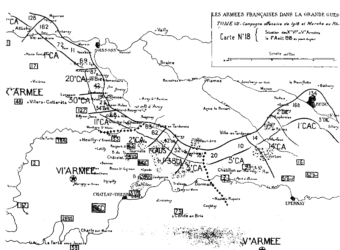 Cette carte est extraite de "LES ARMÉES FRANÇAISES DANS LA GRANDE GUERRE" édité par le Service Historique - État Major de l'Armée - 1920 - 1930.