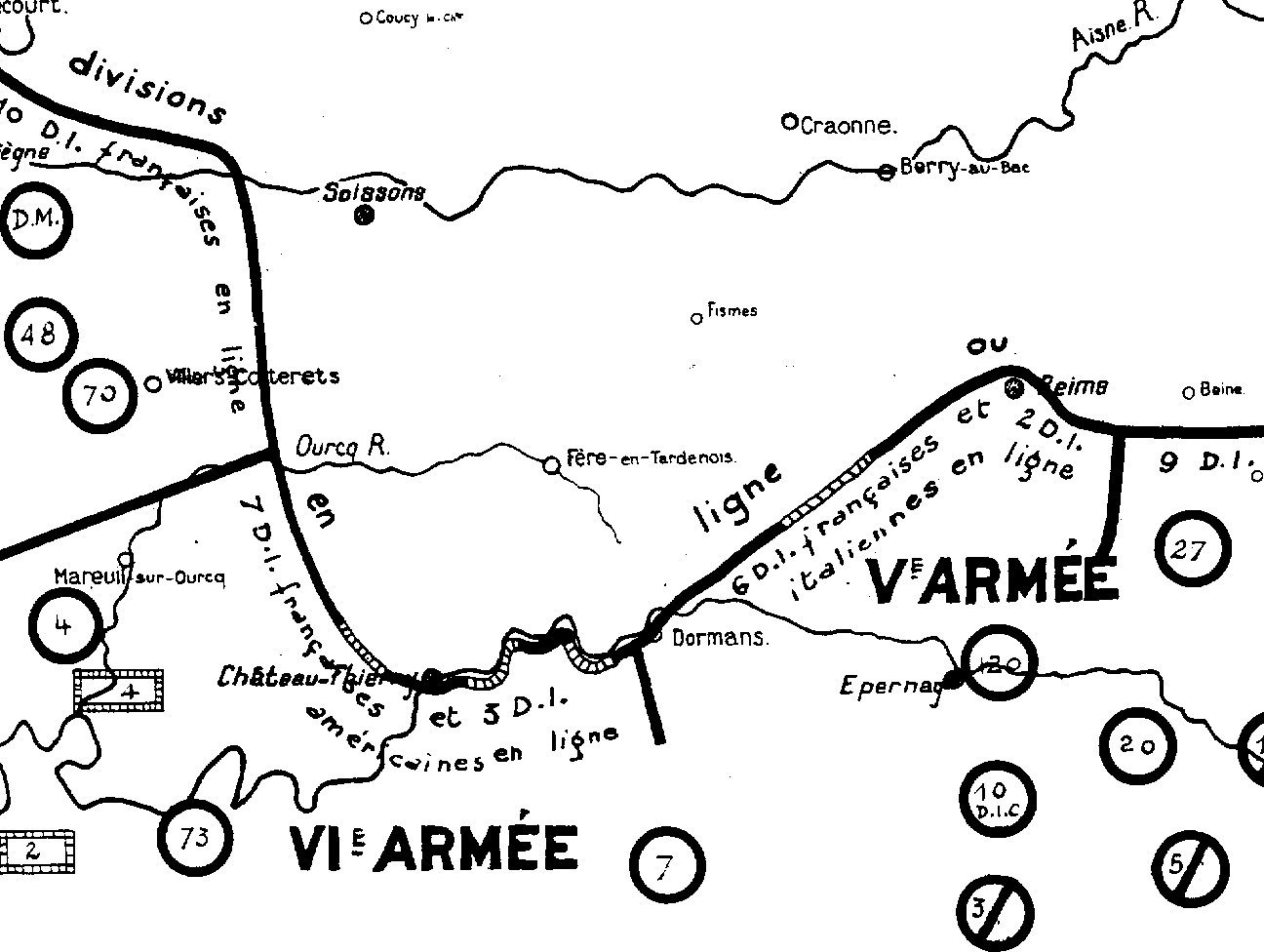Cette carte est extraite de "LES ARMÉES FRANÇAISES DANS LA GRANDE GUERRE" édité par le Service Historique - État Major de l'Armée - 1920 - 1930.