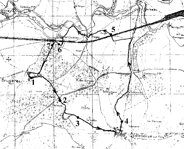 - Départ à 9 heures précises place de l'église de Bruyère sur Fère,