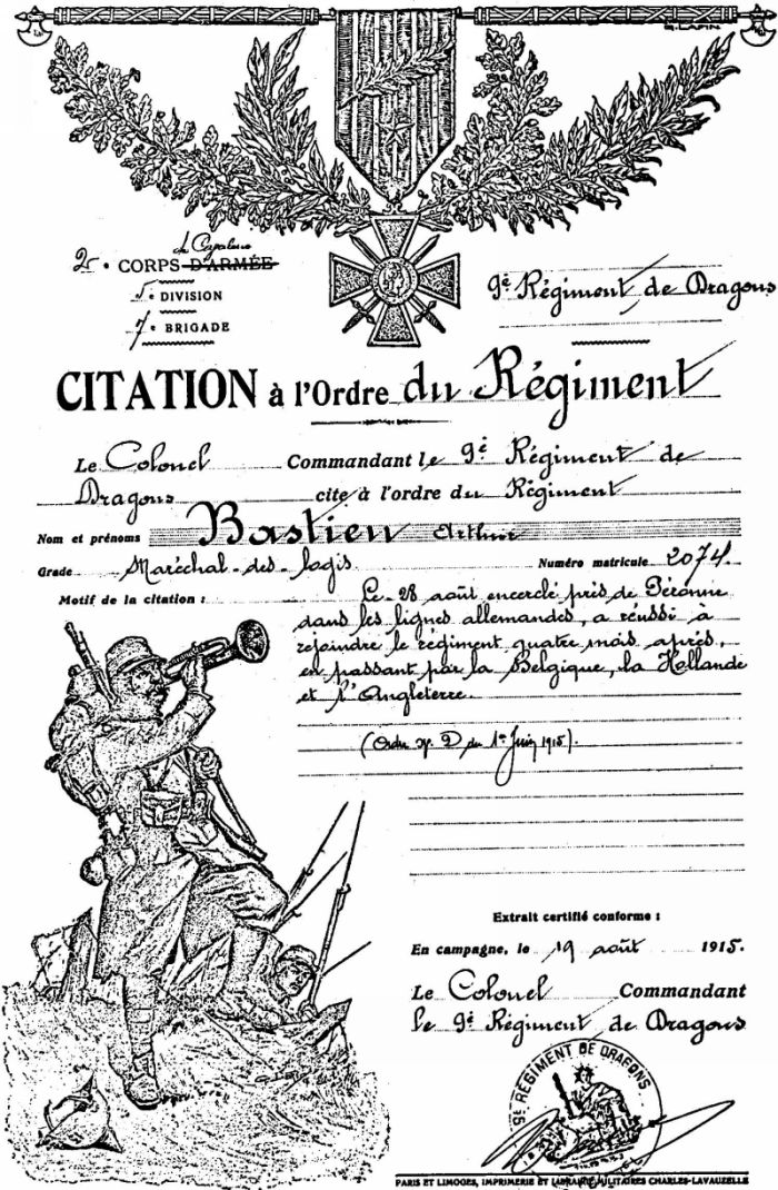 ARTHUR-DANIEL BASTIEN DU 9ème DRAGONS