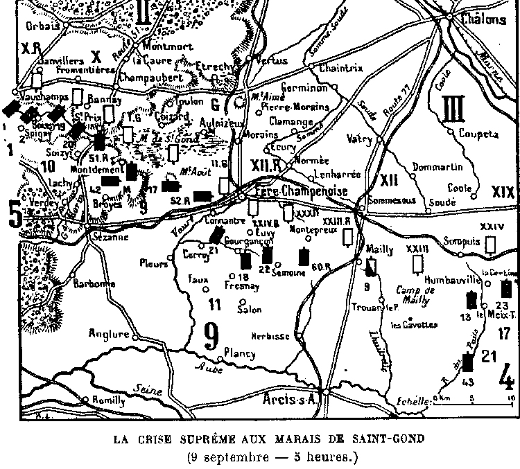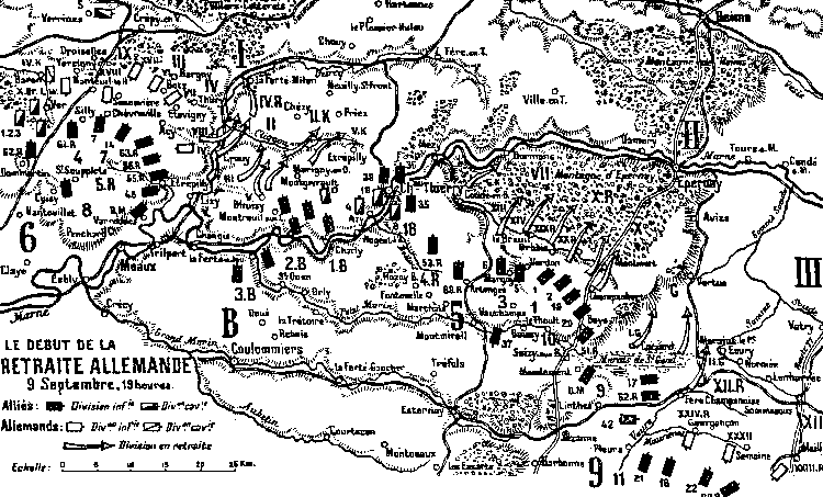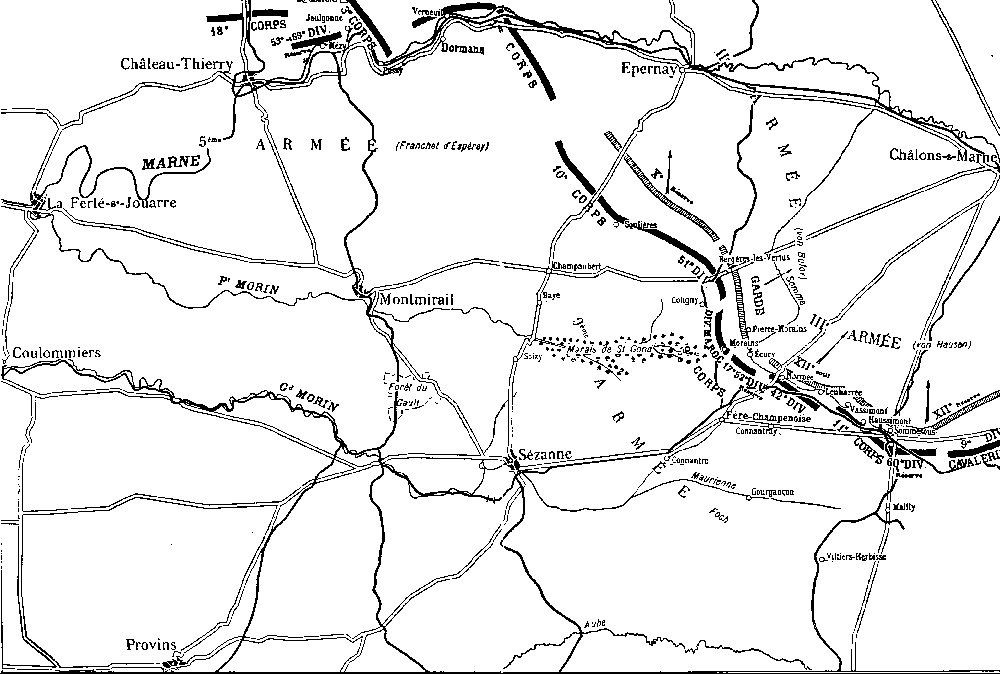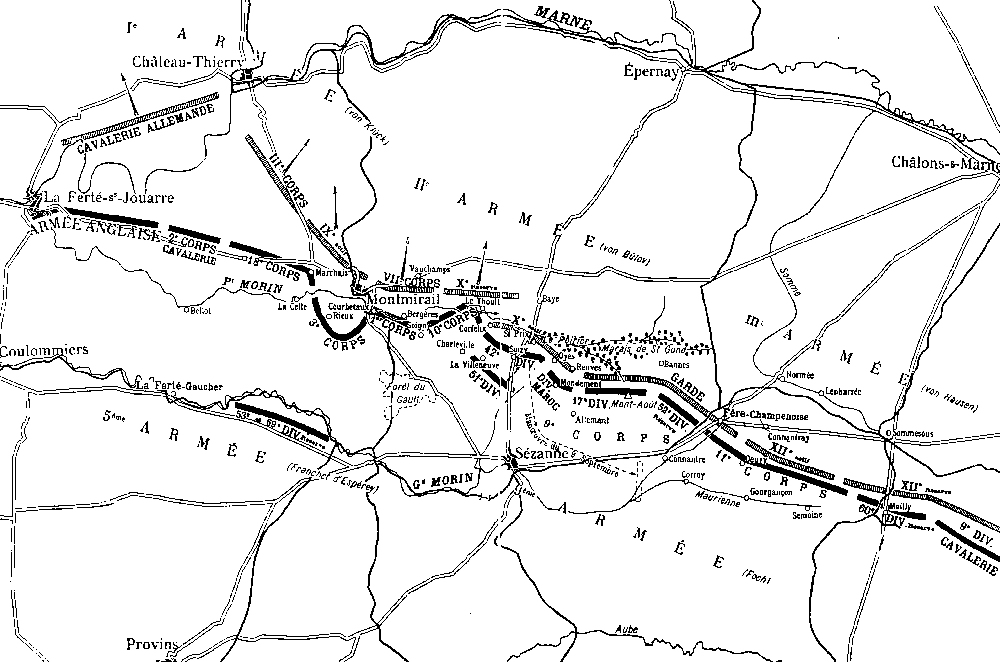 Carte des positions le 9 septembre, armée French entre 6e et 5e armées françaises