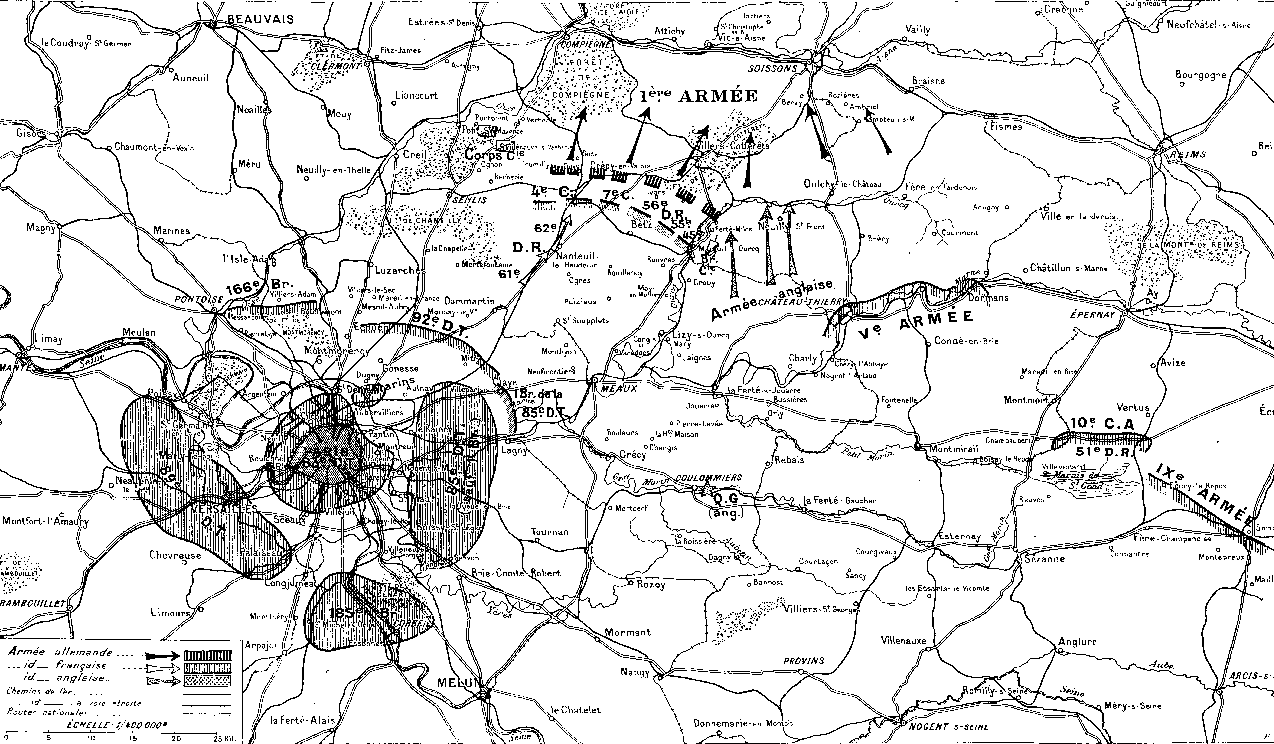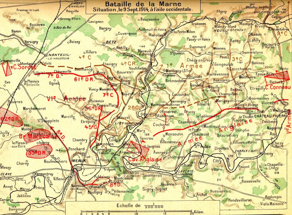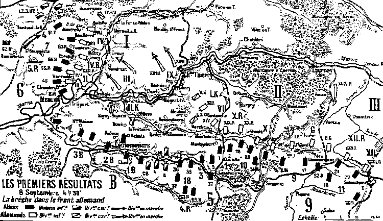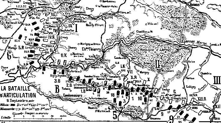 Carte des positions le 8 septembre 04h 30, 6e, armée French, 5e et 9e armées françaises