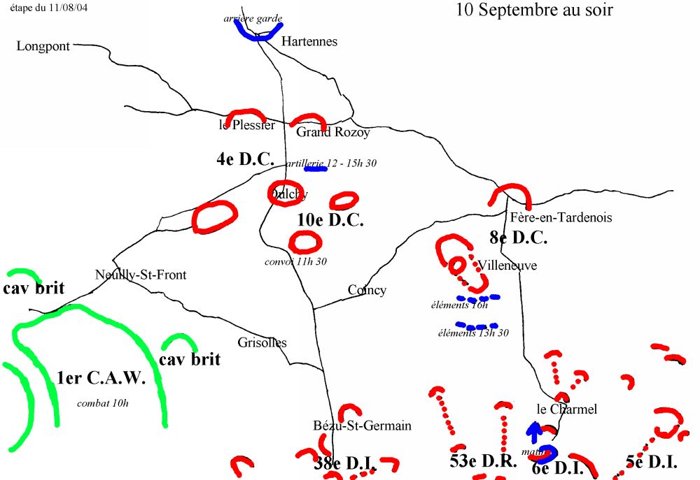 Le 2ème Corps de Cavalerie le 10 septembre, au soir.