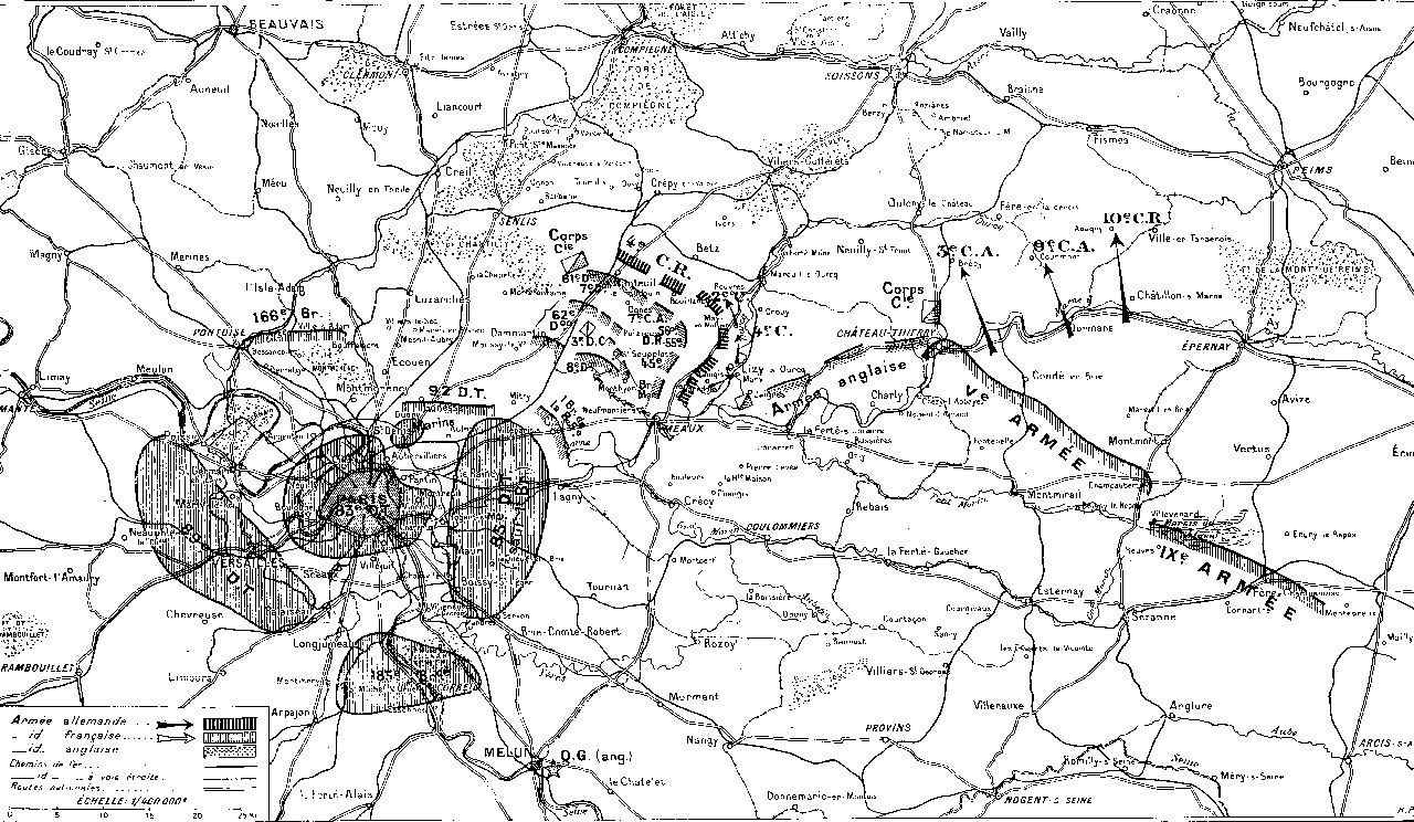 Carte des positions le 10 septembre, armée French entre 6e et 5e armées françaises