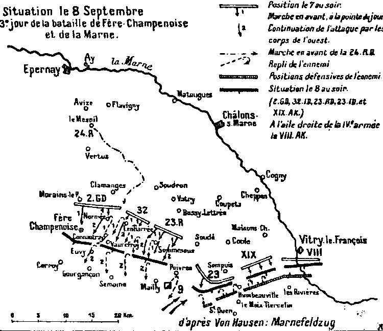 Carte des positions le 8 septembre, de la Ire et IIe armées allemandes