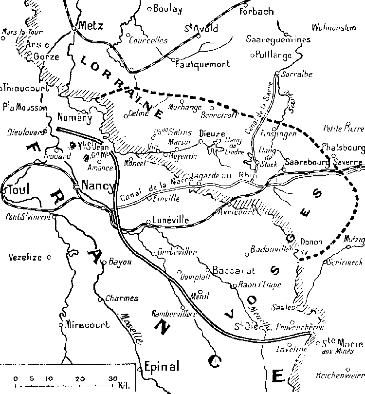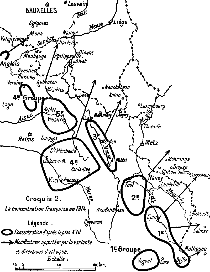 Carte du déploiement des armées allemandes, lors des batailles des frontières, vue par von Kühl