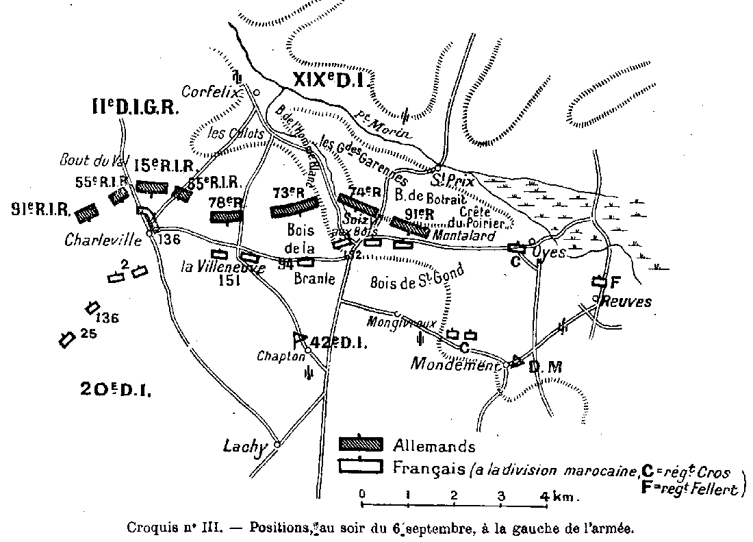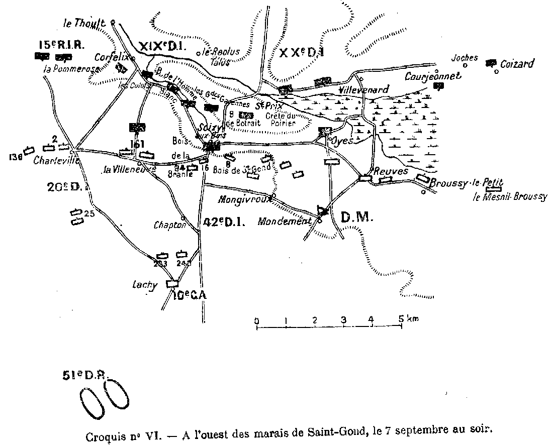 Les combats du 6septembre, au sud des marais de Saint-Gond