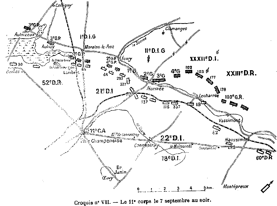 Les combats du 7 septembre, à l'est-sud-est des marais de Saint-Gond