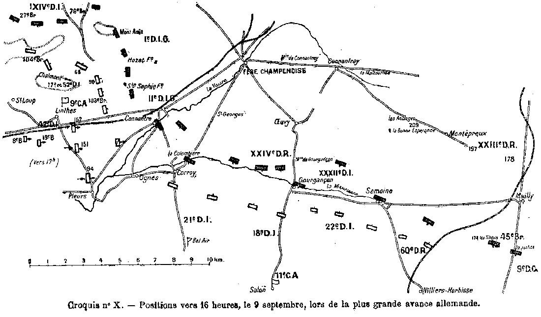 Le 5 septembre, la retraite s'arrête, mise en place de la 9ème Armée sur une ligne de défense.