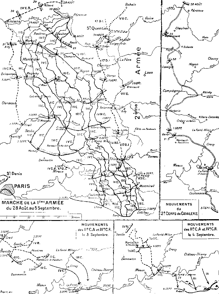 Carte de la progession du 30 août au 5 septembre des Ire, IIe et IIIe armées allemandes