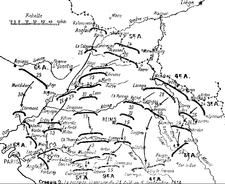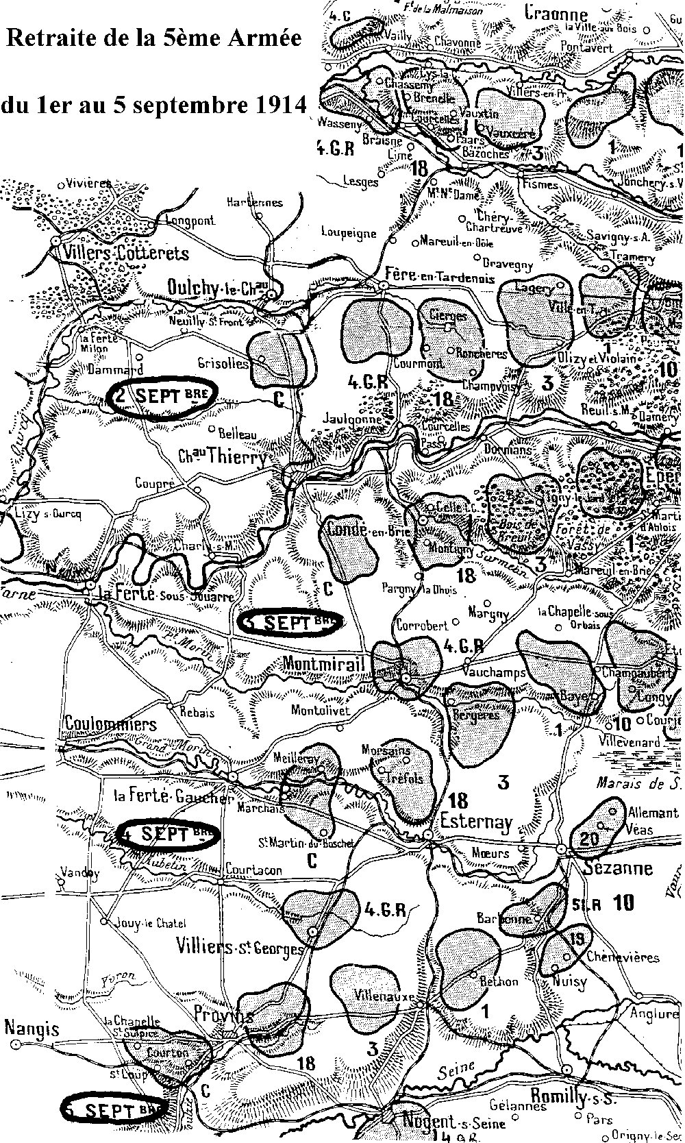 Carte de la retraite de la 5ème Armée Française du 1er au 5 septembre