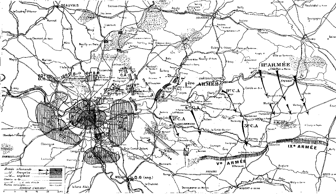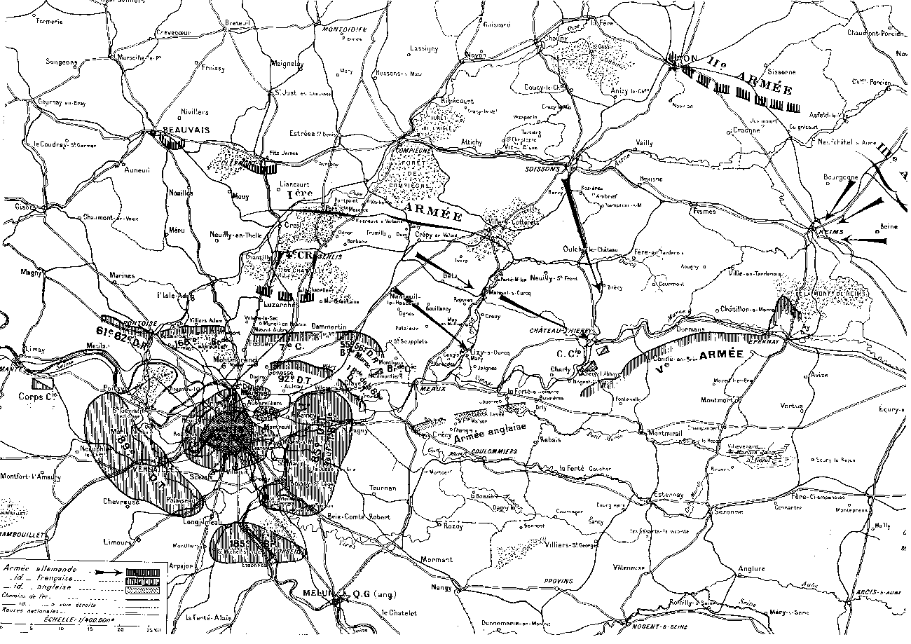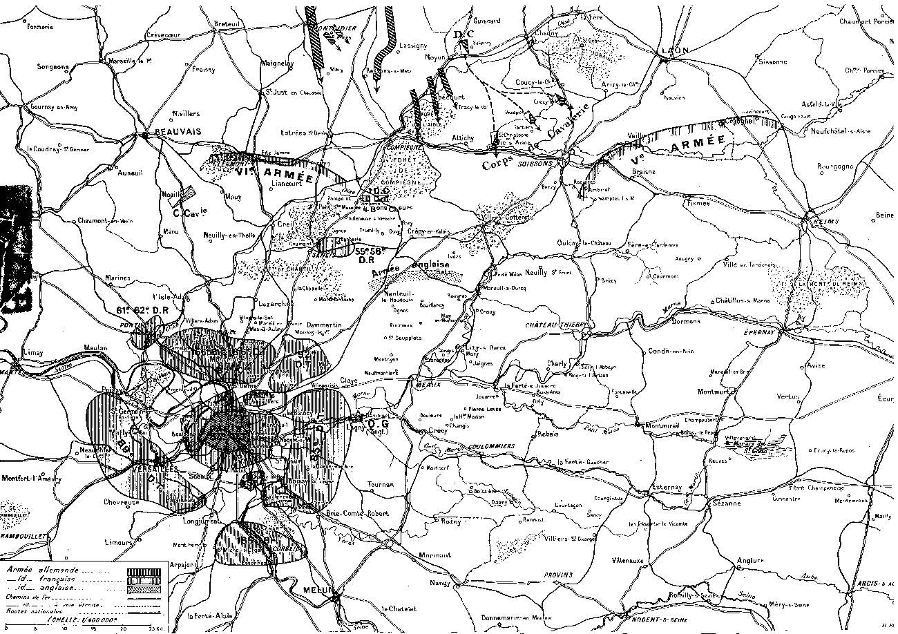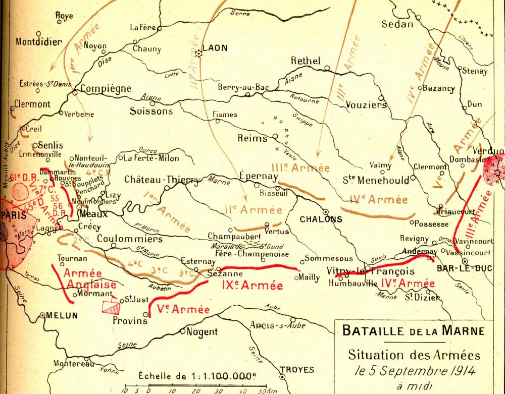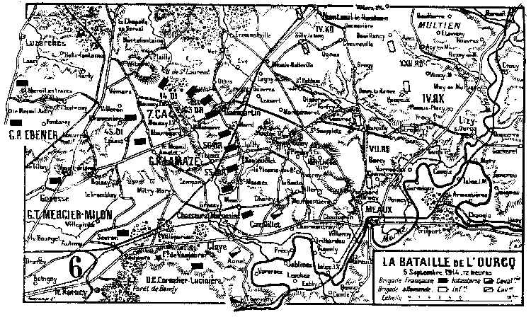 Carte des positions le 5 septembre, armée French entre 6e et 5e armées françaises