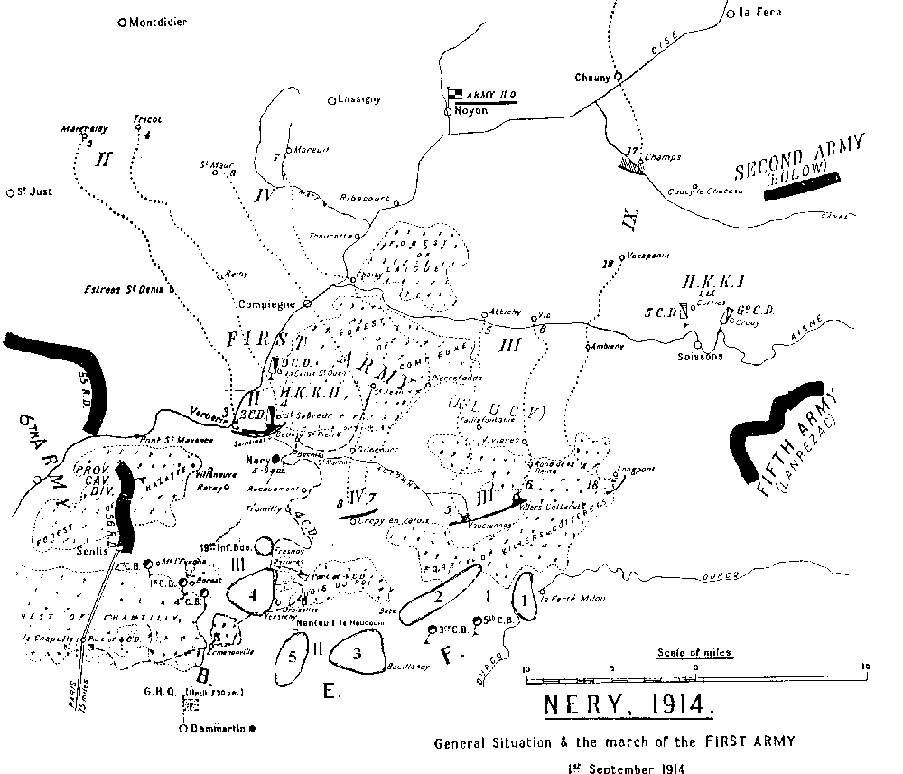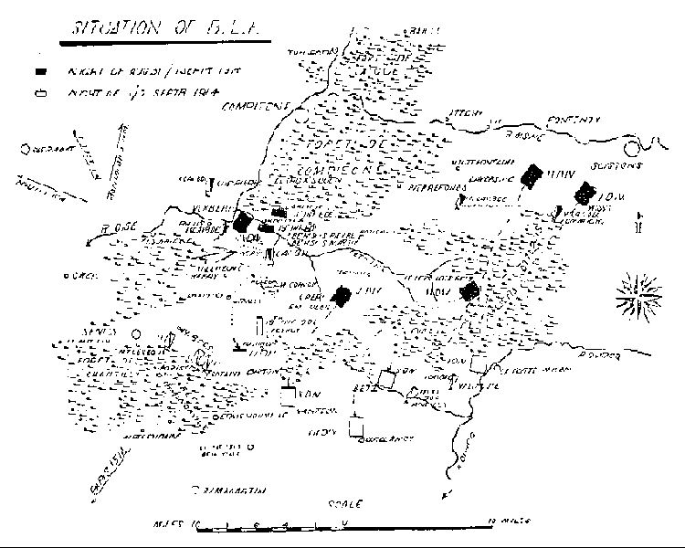 La B.E.F. le 1er septembre au soir, après les combats de Villers-Cotterêts et Néry